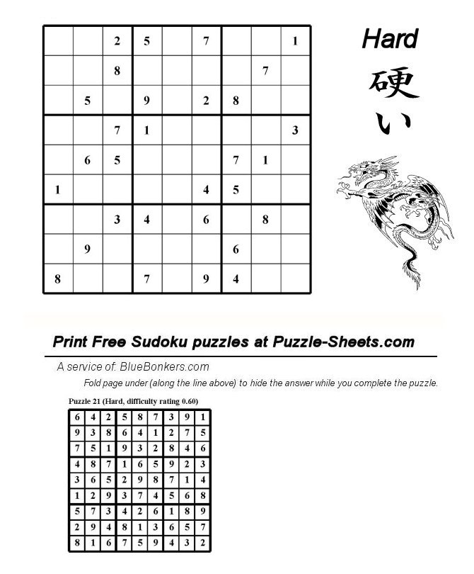 Print the free sudoku puzzle above and fold it under along the line on the page to hide the solution while you