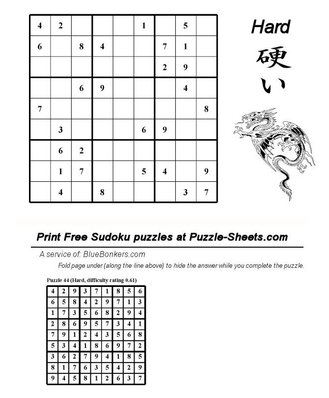 Print the free sudoku puzzle above and fold it under along the line on the page to hide the solution while you